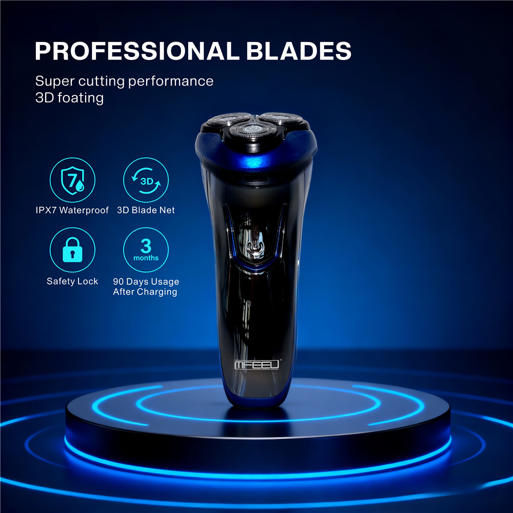 2x1.2v 400mAh nickel-cadmium battery three-head razor, ABS+AS, 8-hour three-head rechargeable razor head, 3W water wash
